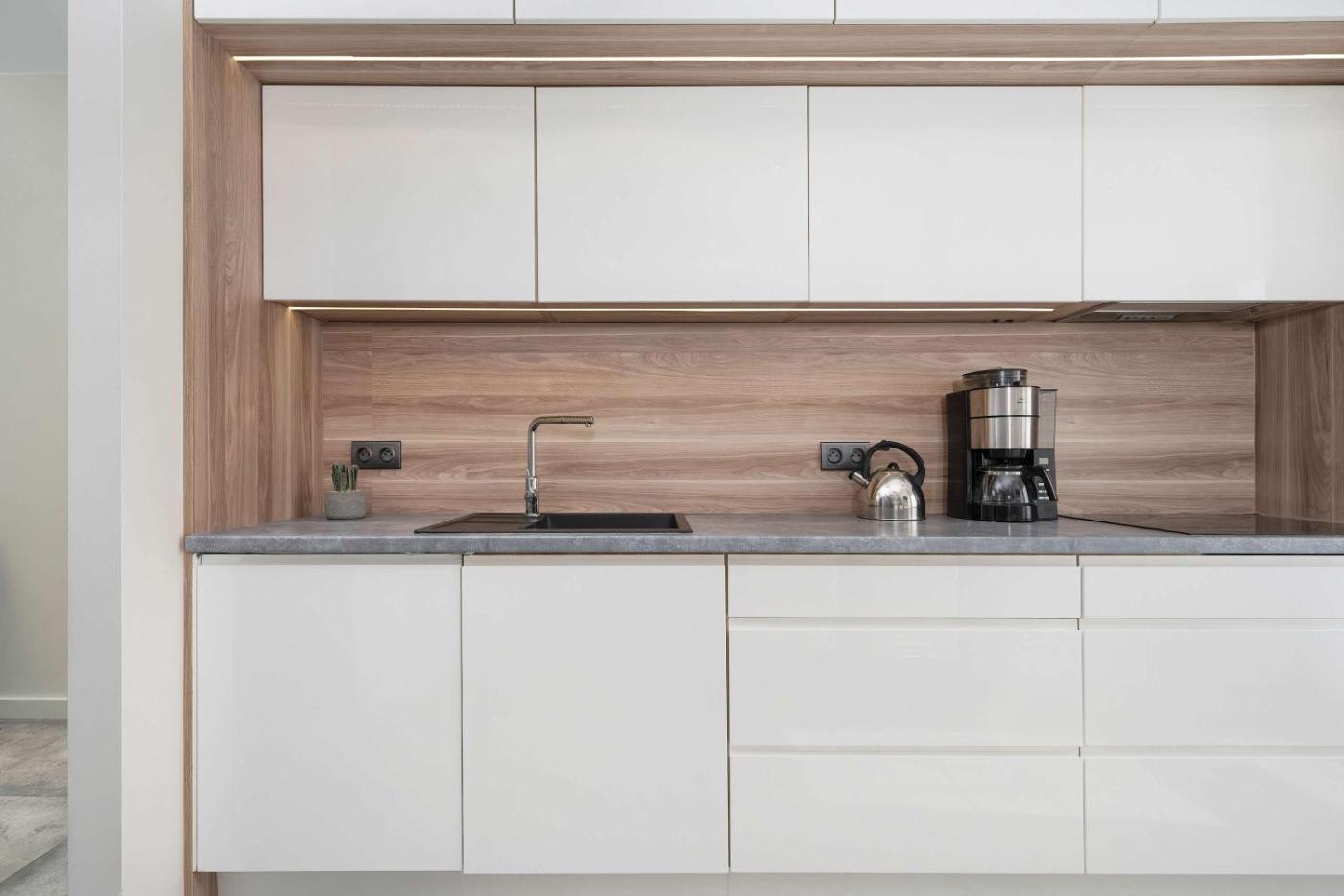 Oferta apartamentu obejmuje sypialnię (1), salon, aneks kuchenny z pełnym wyposażeniem, w tym lodówką i ekspresem do kawy, a także łazienkę (1) z prysznicem oraz bezpłatnym zestawem kosmetyków. W apartamencie zapewniono ręczniki i pościel.